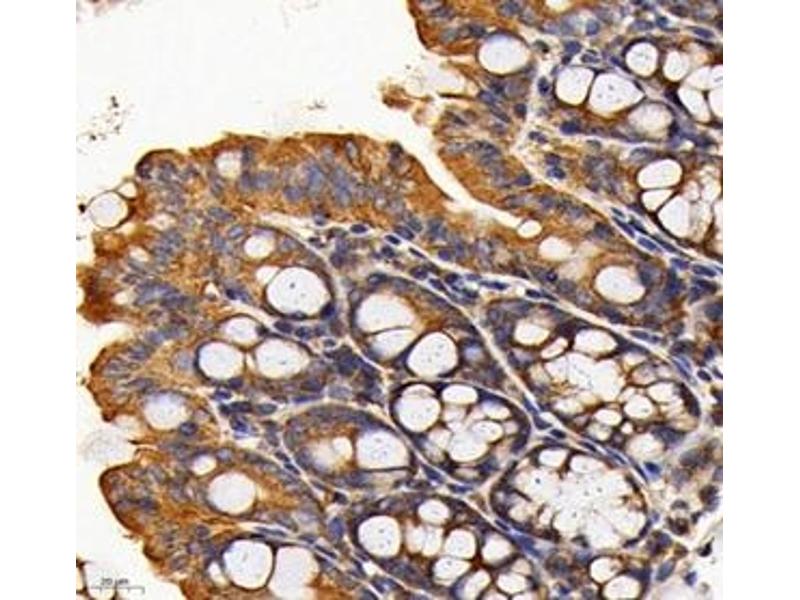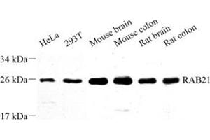 RAB21 is a member of a subfamily of small GTP-binding protein genes of the Ras superfamily that plays an important role in intracellular vesicular targeting. In non-polarized Caco-2 cells, RAB21 showed a general endoplasmic reticulum (ER)-like localization, while in polarized cells, RAB21 localized to apical vesicles. RAB21 has been shown to associate with integrin subunits and to be important for receptor entry into cells via RAB5/RAB21 endosomes.