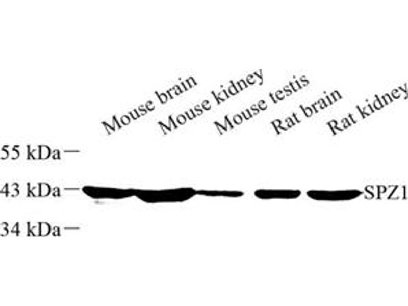 Spermatogenic leucine zipper protein 1 is a member of the basic helix-loop-helix (bHLH) family of transcription factors which is expressed specifically in the testis and epididymis. Studies show that SPZ1 acts downstream of mitogen-activated protein kinase (MAPK), an extracellular signal-regulated kinase 1/2 to up-regulate cell proliferation and tumorigenesis. Also, through an interaction with proliferating cell nuclear antigen (PCNA) promoter, SPZ1 induced cell proliferation concomitant with an increase in PCNA gene expression.
