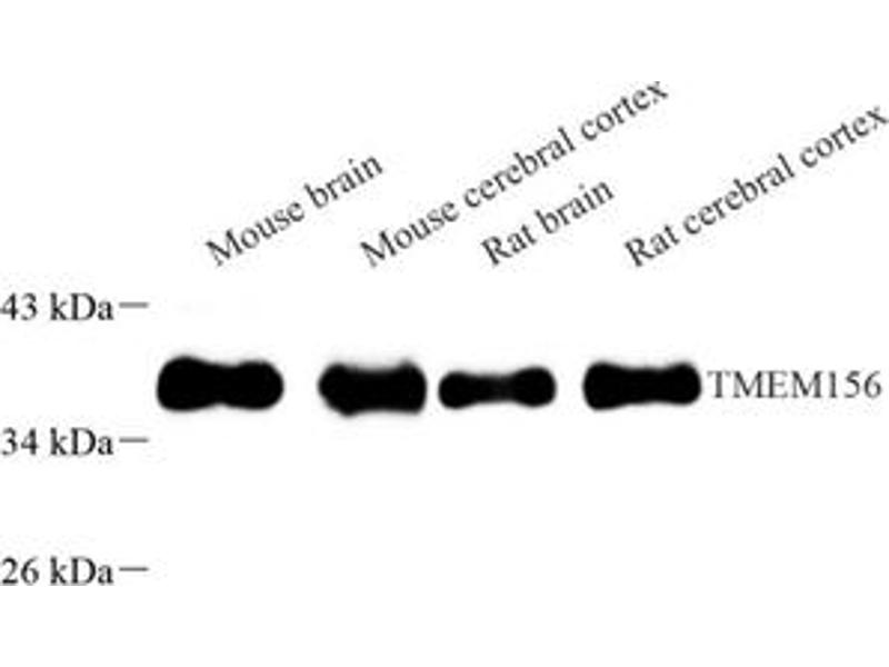 The Rabbit Polyclonal anti-TMEM156 antibody has been validated for WB. It is suitable to detect TMEM156 in samples from Mouse and Rat.