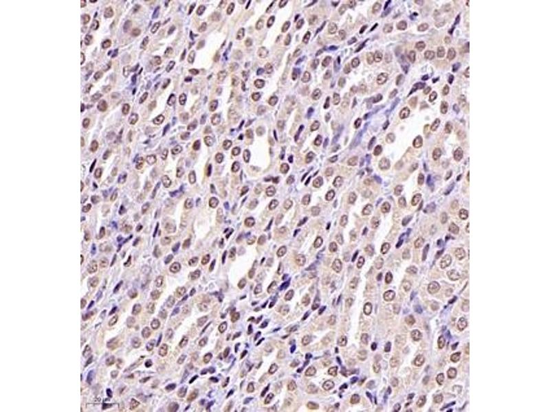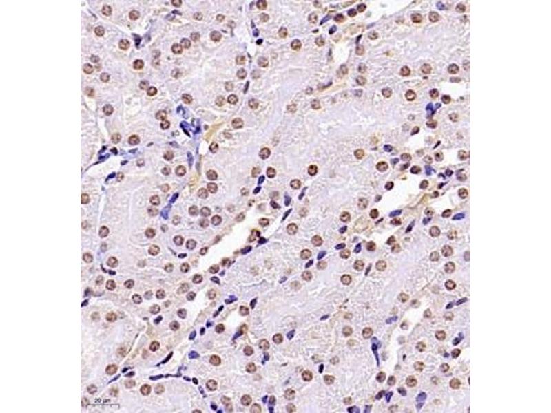 - USP34, also named as KIAA0570 and KIAA0729, belongs to the peptidase C19 family. USP34 recognizes and hydrolyzes the peptide bond at the C-terminal Gly of ubiquitin. It is involved in the processing of poly-ubiquitin precursors as well as that of ubiquitinated proteins. The antibody recognize all these 3 isoforms of USP34.