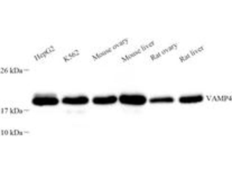 VAMP4 is a member of the vesicle-associated membrane protein (VAMP)/synaptobrevin family and the SNARE superfamily. Characterized by a common sequence called the SNARE motif, SNARE proteins are involved in membrane fusion and vesicular transport . VAMP4 may play a role in trans-Golgi network to endosome transport.