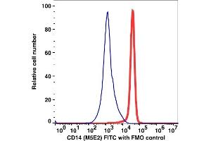 - Clone M5E2 reacts with a nonfunctional domain of human CD14, a 53-55 kDa glycosylphosphatidylinositol (GPI)- anchored and single chain glycoprotein expressed at high levels on monocytes. Additionally, the CD14 reacts with monocytes, interfollicular macrophages, reticular dendritic cells and some Langerhans cells. The binding of the CD14 does not inhibit CD14 mediated activities, and is useful for detecting CD14 expression by immunofluorescence and or immunocytochemical methods.