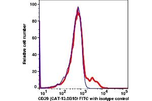 The clone CAT-13.0B10, a mouse monoclonal antibody recognizes a 70 - 100 kDa cell surface antigen known as CD39. It is also known as ATPDase or Ecto-ATP diphosphohydrolase as it has intrinsic Ecto-ATPase activity. CD39 is expressed on peripheral blood B cells and on a subset of T cells, and its expression level increases upon immune activation. The CD4+ CD39+ T cells catalyze cleavage of adenosine triphosphate (ATP) to adenosine monophosphate (AMP), largely overlap with the CD4+ CD25high FOXP3+ regulatory T cells and mediate potent immune suppression. CD39 also plays an important role in immune activation.