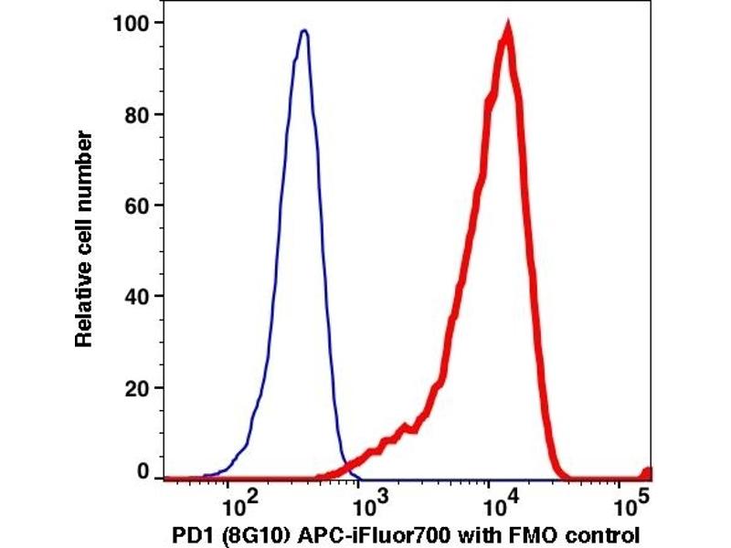 The APC-iFluor™700-conjugated Mouse Monoclonal anti-PD-1 antibody (Clone 8G10) (ABIN7076774) specifically detects PD-1 in FACS.