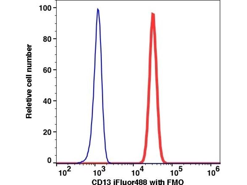 The iFluor™488-conjugated Mouse Monoclonal anti-CD13 antibody (Clone APN-1464) (ABIN7076879) specifically detects CD13 in FACS.