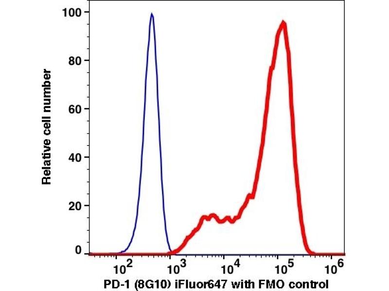 The iFluor™647-conjugated Mouse Monoclonal anti-PD-1 antibody (Clone 8G10) (ABIN7077591) specifically detects PD-1 in FACS.