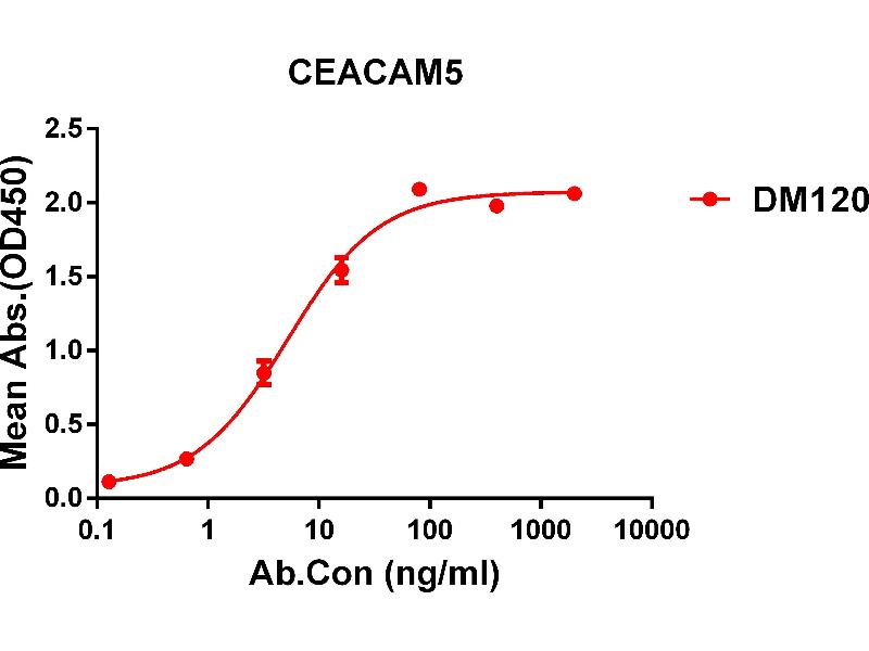 Synonyms:CEACAM-5,CD66e,CEA,Meconium antigen 100 Description:This gene encodes a cell surface glycoprotein that represents the founding member of the carcinoembryonic antigen (CEA) family of proteins. The encoded protein is used as a clinical biomarker for gastrointestinal cancers and may promote tumor development through its role as a cell adhesion molecule. Additionally, the encoded protein may regulate differentiation, apoptosis, and cell polarity. This gene is present in a CEA family gene cluster on chromosome 19. Alternative splicing results in multiple transcript variants.