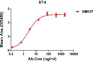 Synonyms:5T4 Description:This gene encodes a leucine-rich transmembrane glycoprotein that may be involved in cell adhesion. The encoded protein is an oncofetal antigen that is specific to trophoblast cells. In adults this protein is highly expressed in many tumor cells and is associated with poor clinical outcome in numerous cancers. Alternate splicing in the 5' UTR results in multiple transcript variants that encode the same protein.