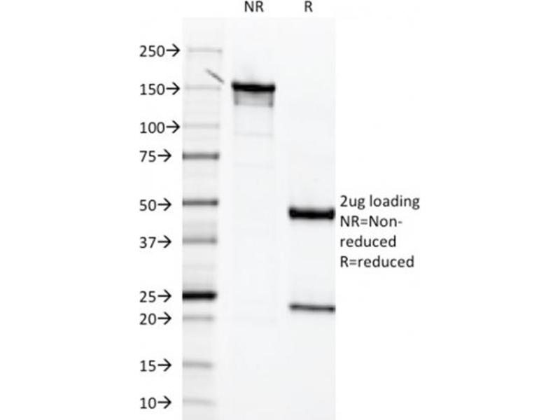 Known Application: Immunohistochemistry (Formalin-fixed) (2-4 μg/mL for 30 minutes at RT),(Staining of formalin-fixed tissues requires heating tissue sections in 10 mM Tris with 1 mM EDTA, pH 9.0, for 45 min at 95 °C followed by cooling at RT for 20 minutes),Optimal dilution for a specific application should be determined.