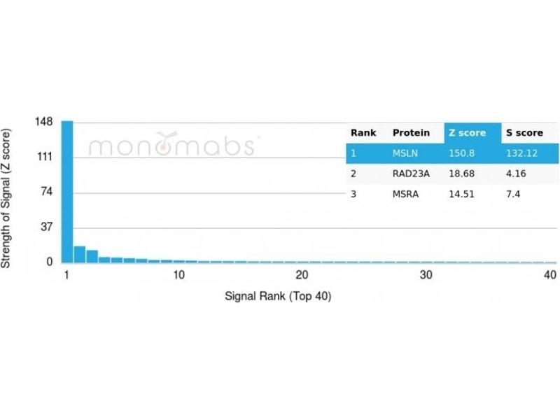 - Recombinant fragment (around aa 273-407) of human Mesothelin (MSLN) protein (exact sequence is proprietary)