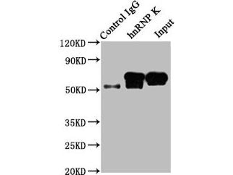Background: One of the major pre-mRNA-binding proteins. Binds tenaciously to poly(C) sequences. Likely to play a role in the nuclear metabolism of hnRNAs, particularly for pre-mRNAs that contain cytidine-rich sequences. Can also bind poly(C) single-stranded DNA. Plays an important role in p53/TP53 response to DNA damage, acting at the level of both transcription activation and repression. When sumoylated, acts as a transcriptional coactivator of p53/TP53, playing a role in p21/CDKN1A and 14-3-3 sigma/SFN induction (By similarity). As far as transcription repression is concerned, acts by interacting with long intergenic RNA p21 (lincRNA-p21), a non-coding RNA induced by p53/TP53. This interaction is necessary for the induction of apoptosis, but not cell cycle arrest.