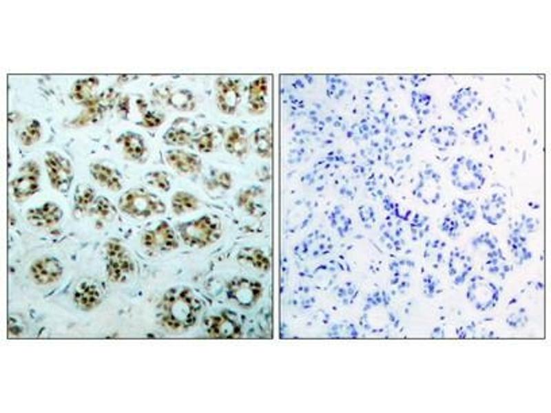 Antibodies were produced by immunizing rabbits with synthetic phosphopeptide and KLH conjugates. Antibodies were purified by affinity-chromatography using epitope-specific phosphopeptide. Non-phospho specific antibodies were removed by chromatogramphy usi
