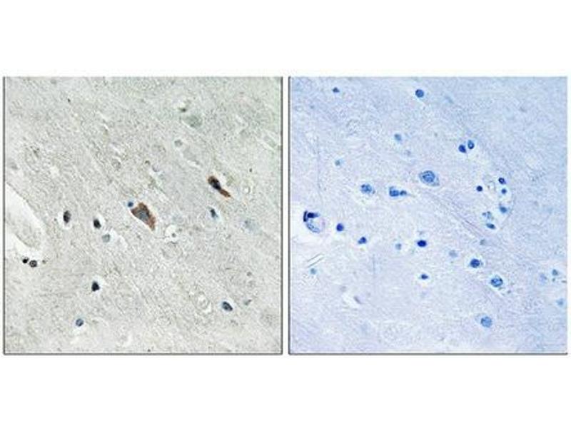 Antibodies were produced by immunizing rabbits with synthetic phosphopeptide and KLH conjugates. Antibodies were purified by affinity-chromatography using epitope-specific phosphopeptide. Non-phospho specific antibodies were removed by chromatogramphy usi