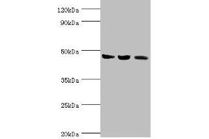 Aliases: ACAT 1 antibody, ACAT antibody, acat1 antibody, Acetoacetyl CoA thiolase antibody, acetoacetyl Coenzyme A thiolase antibody, Acetoacetyl-CoA thiolase antibody, Acetyl CoA acetyltransferase, mitochondrial antibody, Acetyl Coenzyme A acetyltransferase 1 antibody, Acetyl-CoA acetyltransferase antibody, acetyl-coa acetyltransferase precursor, mitochondrial antibody, Acetyl-CoA thiolase, mitochondrial antibody, acetyl-Coenzyme A acetyltransferase 1 antibody, MAT antibody, mitochondrial acetoacetyl-CoA thiolase antibody, mitochondrial antibody, RATACAL antibody, T2 antibody, testicular tissue protein Li 198 antibody, THIL antibody, THIL_HUMAN antibody