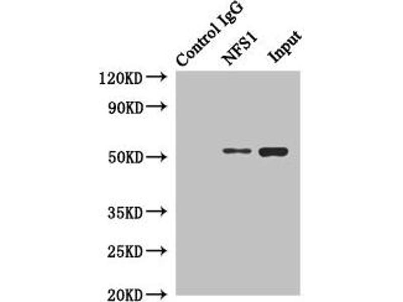 Aliases: Cysteine desulfurase antibody, Cysteine desulfurase, mitochondrial antibody, HUSSY 08 antibody, IscS antibody, mitochondrial antibody, NFS1 antibody, NFS1 nitrogen fixation 1 antibody, NFS1 nitrogen fixation 1 homolog (S. cerevisiae) antibody, NFS1_HUMAN antibody, NIFS antibody, nitrogen fixation 1 (S. cerevisiae, homolog) antibody, nitrogen fixation gene 1 antibody, nitrogen-fixing bacteria S, homolog of antibody, nitrogen-fixing bacteria S-like protein antibody, OTTHUMP00000030799 antibody