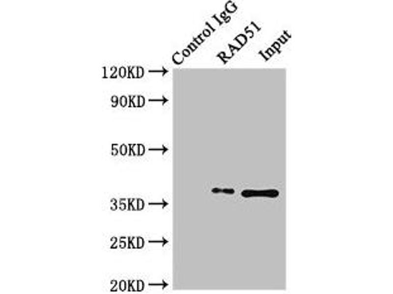 Aliases: BRCA1/BRCA2 containing complex, subunit 5 antibody, BRCC 5 antibody, BRCC5 antibody, DNA repair protein RAD51 homolog 1 antibody, DNA repair protein rhp51 antibody, FANCR antibody, hRAD51 antibody, HsRAD51 antibody, HsT16930 antibody, MRMV2 antibody, Rad 51 antibody, RAD51 antibody, RAD51 homolog (RecA homolog, E. coli) (S. cerevisiae) antibody, RAD51 homolog A antibody, RAD51 homolog antibody, RAD51 recombinase antibody, RAD51, S. cerevisiae, homolog of antibody, RAD51_HUMAN antibody, RAD51A antibody, RECA antibody, RecA like protein antibody, RecA, E. coli, homolog of antibody, Recombination protein A antibody