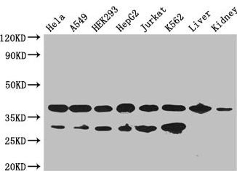 Aliases: 38 kDa BFA-dependent ADP-ribosylation substrate antibody, aging associated gene 9 protein antibody, Aging-associated gene 9 protein antibody, BARS-38 antibody, cb609 antibody, EC 1.2.1.12 antibody, Epididymis secretory sperm binding protein Li 162eP antibody, G3P_HUMAN antibody, G3PD antibody, G3PDH antibody, GAPD antibody, GAPDH antibody, Glyceraldehyde 3 phosphate dehydrogenase antibody, glyceraldehyde 3-PDH antibody, Glyceraldehyde-3-phosphate dehydrogenase antibody, HEL-S-162eP antibody, KNC-NDS6 antibody, MGC102544 antibody, MGC102546 antibody, MGC103190 antibody, MGC103191 antibody, MGC105239 antibody, MGC127711 antibody, MGC88685 antibody, OCAS, p38 component antibody, OCT1 coactivator in S phase, 38-KD component antibody, peptidyl cysteine S nitrosylase GAPDH antibody, Peptidyl-cysteine S-nitrosylase GAPDH antibody, wu:fb33a10 antibody