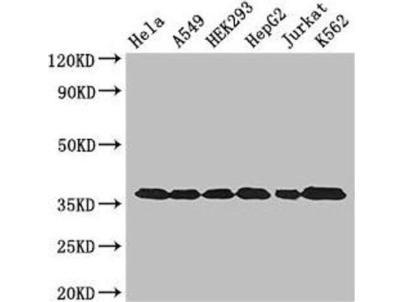 Aliases: 38 kDa BFA-dependent ADP-ribosylation substrate antibody, aging associated gene 9 protein antibody, Aging-associated gene 9 protein antibody, BARS-38 antibody, cb609 antibody, EC 1.2.1.12 antibody, Epididymis secretory sperm binding protein Li 162eP antibody, G3P_HUMAN antibody, G3PD antibody, G3PDH antibody, GAPD antibody, GAPDH antibody, Glyceraldehyde 3 phosphate dehydrogenase antibody, glyceraldehyde 3-PDH antibody, Glyceraldehyde-3-phosphate dehydrogenase antibody, HEL-S-162eP antibody, KNC-NDS6 antibody, MGC102544 antibody, MGC102546 antibody, MGC103190 antibody, MGC103191 antibody, MGC105239 antibody, MGC127711 antibody, MGC88685 antibody, OCAS, p38 component antibody, OCT1 coactivator in S phase, 38-KD component antibody, peptidyl cysteine S nitrosylase GAPDH antibody, Peptidyl-cysteine S-nitrosylase GAPDH antibody, wu:fb33a10 antibody