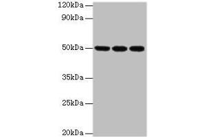 Aliases: HAT 1 antibody, hat1 antibody, HAT1_HUMAN antibody, Histidine aminotransferase 1 antibody, Histone acetyltransferase 1 antibody, Histone acetyltransferase 1 antibody, Histone acetyltransferase type B catalytic subunit antibody, KAT1 antibody