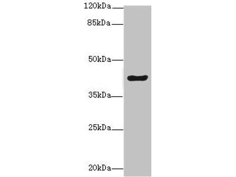 Aliases: DKFZp686L18234 antibody, EC 3.-.-.- antibody, Mesoderm specific transcript (mouse) homolog antibody, Mesoderm specific transcript homolog (mouse) antibody, Mesoderm-specific transcript homolog protein antibody, MEST antibody, MEST_HUMAN antibody, MGC111102 antibody, MGC8703 antibody, OTTHUMP00000210362 antibody, OTTHUMP00000210364 antibody, OTTHUMP00000210367 antibody, Paternally expressed gene 1 antibody, Paternally-expressed gene 1 protein antibody, PEG1 antibody