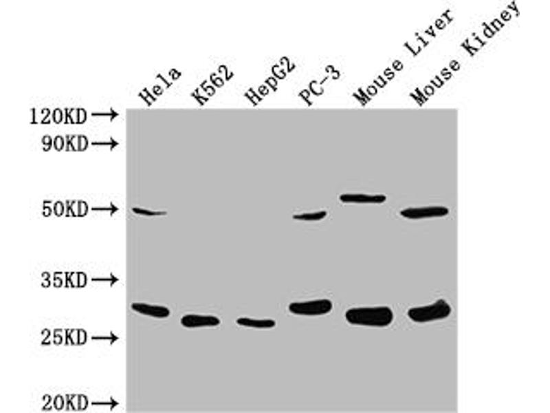 - Recommended dilution: WB:1:500-1:5000, IHC:1:20-1:200, IF:1:50-1:200, IP:1:200-1:2000,