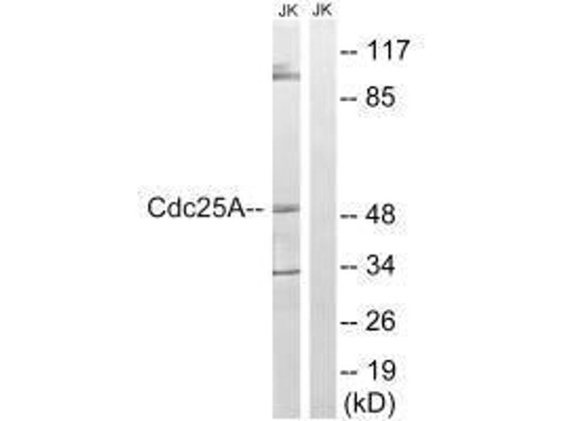 Aliases: Cdc 25a antibody, CDC25A antibody, CDC25A2 antibody, CDC25A2 CAG isoform antibody, Cell division cycle 25 homolog A (S. pombe) antibody, Cell division cycle 25A antibody, Cell division cycle 25A isoform a antibody, Cell division cycle 25A isoform b antibody, D9Ertd393e antibody, Dual specificity phosphatase Cdc25A antibody, M phase inducer phosphatase 1 antibody, M-phase inducer phosphatase 1 antibody, MGC115549 antibody, MPIP1_HUMAN antibody