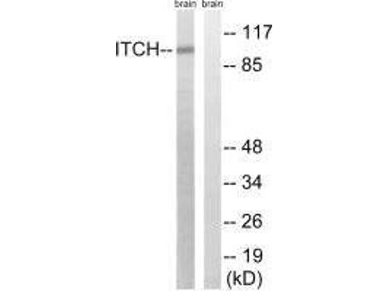 Wood J.D., Mol. Cell. Neurosci. 11:149-160(1998).Aliases: ADMFD antibody, AIF4 antibody, AIP4 antibody, Atrophin 1 interacting protein 4 antibody, Atrophin-1-interacting protein 4 antibody, dJ468O1.1 antibody, dJ468O1.1 (atrophin 1 interacting protein 4 (AIP4)) antibody, dJ468O1.1 atrophin 1 interacting protein 4 AIP4 antibody, E3 ubiquitin protein ligase Itchy homolog antibody, E3 ubiquitin-protein ligase Itchy homolog antibody, EC 6.3.2 antibody, Itch antibody, ITCH_HUMAN antibody, Itchy E3 ubiquitin protein ligase antibody, Itchy E3 ubiquitin protein ligase homolog antibody, Itchy E3 ubiquitin protein ligase homolog mouse antibody, Itchy E3 ubiquitin protein ligase, mouse, homolog of antibody, Itchy homolog E3 ubiquitin protein ligase antibody, Itchy mouse homolog E3 ubiquitin protein ligase antibody, NAPP1 antibody, NFE2 associated polypeptide 1 antibody, NFE2-associated polypeptide 1 antibody, Ubiquitin protein ligase ITCH antibody