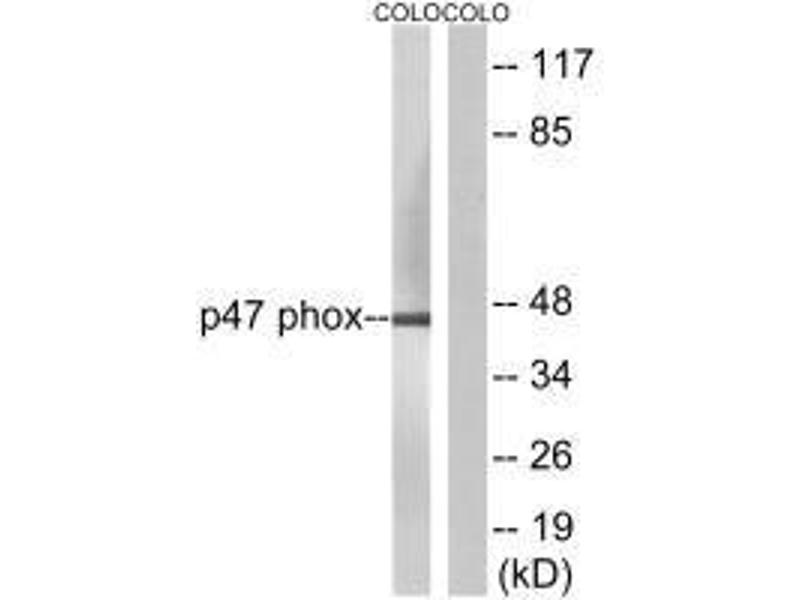 Gu Y., Exp. Cell Res. 272:62-74(2002).Aliases: 47 kDa autosomal chronic granulomatous disease protein antibody, 47 kDa neutrophil oxidase factor antibody, NADPH oxidase organizer 2 antibody, NCF 47K antibody, NCF-1 antibody, NCF-47K antibody, Ncf1 antibody, NCF1_HUMAN antibody, Neutrophil cytosol factor 1 antibody, Neutrophil cytosolic factor 1 antibody, neutrophil cytosolic factor 1, (chronic granulomatous disease, autosomal 1) antibody, Neutrophil NADPH oxidase factor 1 antibody, Nox organizer 2 antibody, Nox organizing protein 2 antibody, Nox-organizing protein 2 antibody, NOXO2 antibody, p47 phox antibody, p47-phox antibody, SH3 and PX domain containing protein 1A antibody, SH3 and PX domain-containing protein 1A antibody, SH3PXD1A antibody