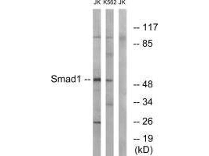 Hoodless P.A., Cell 85:489-500(1996)Aliases: BSP-1 antibody, BSP1 antibody, HsMAD1 antibody, JV4-1 antibody, JV41 antibody, MAD homolog 1 antibody, MAD mothers against decapentaplegic homolog 1 antibody, Mad related protein 1 antibody, Mad-related protein 1 antibody, MADH1 antibody, MADR1 antibody, Mothers against decapentaplegic homolog 1 antibody, Mothers against DPP homolog 1 antibody, SMA- AND MAD-RELATED PROTEIN 1 antibody, SMAD 1 antibody, SMAD family member 1 antibody, SMAD mothers against DPP homolog 1 antibody, Smad1 antibody, SMAD1_HUMAN antibody, TGF beta signaling protein 1 antibody, Transforming growth factor-beta-signaling protein 1 antibody