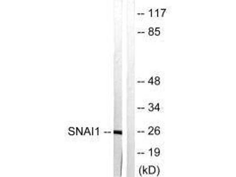 Paznekas W.A., Genomics 62:42-49(1999)Aliases: dJ710H13.1 antibody, Protein sna antibody, Protein snail homolog 1 antibody, Protein snail homolog antibody, SLUGH2 antibody, SNA antibody, Sna protein antibody, SNAH antibody, SNAI antibody, snai1 antibody, SNAI1_HUMAN antibody, Snail 1 homolog antibody, Snail 1 zinc finger protein antibody, SNAIL antibody, Snail family transcriptional repressor 1 antibody, Snail homolog 1 (Drosophila) antibody, SNAIL, Drosophila, homolog of, 1 antibody, SNAIL1 antibody, Zinc finger protein SNAI1 antibody