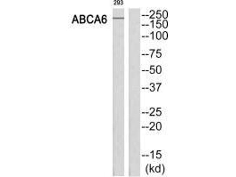 Aliases: ABC transporter ABCA6 antibody, ABCA 6 antibody, ABCA6 antibody, ABCA6_HUMAN antibody, ATP binding cassette A6 antibody, ATP binding cassette sub family A (ABC1) member 6 antibody, ATP binding cassette sub family A member 6 antibody, ATP-binding cassette sub-family A member 6 antibody, EST155051 antibody, FLJ43498 antibody