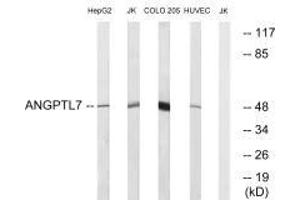 Clark H.F., Genome Res. 13:2265-2270(2003)Aliases: Angiopoietin like 7 antibody, Angiopoietin like factor (CDT6) antibody, Angiopoietin like factor antibody, Angiopoietin related protein 7 antibody, Angiopoietin-like factor antibody, Angiopoietin-like protein 7 antibody, Angiopoietin-related protein 7 antibody, ANGL7_HUMAN antibody, ANGPTL7 antibody, AngX antibody, CDT6 antibody, Cornea derived transcript 6 protein antibody, Cornea-derived transcript 6 protein antibody, dJ647M16.1 antibody, OTTHUMP00000001986 antibody, RP4-647M16.2 antibody