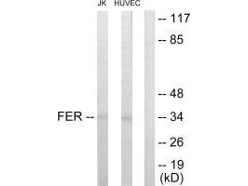 Krolewski J.J., Oncogene 5:277-282(1990).Aliases: c FER antibody, Feline encephalitis virus related kinase FER antibody, Fer (fps/fes related) tyrosine kinase (phosphoprotein NCP94) antibody, Fer (fps/fes related) tyrosine kinase antibody, FER antibody, FER_HUMAN antibody, FerT antibody, Fujinami poultry sarcoma/Feline sarcoma related protein Fer antibody, p94 FER antibody, p94-FER antibody, Pe1Fe10 antibody, Pe1Fe13 antibody, Pe1Fe3 antibody, Pe1Fe6 antibody, Phosphoprotein NCP94 antibody, PPP1R74 antibody, Protein phosphatase 1 regulatory subunit 74 antibody, Proto oncogene tyrosine protein kinase FER antibody, Proto-oncogene c-Fer antibody, TYK3 antibody, Tyrosine kinase 3 antibody, Tyrosine-protein kinase Fer antibody