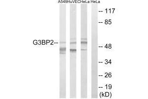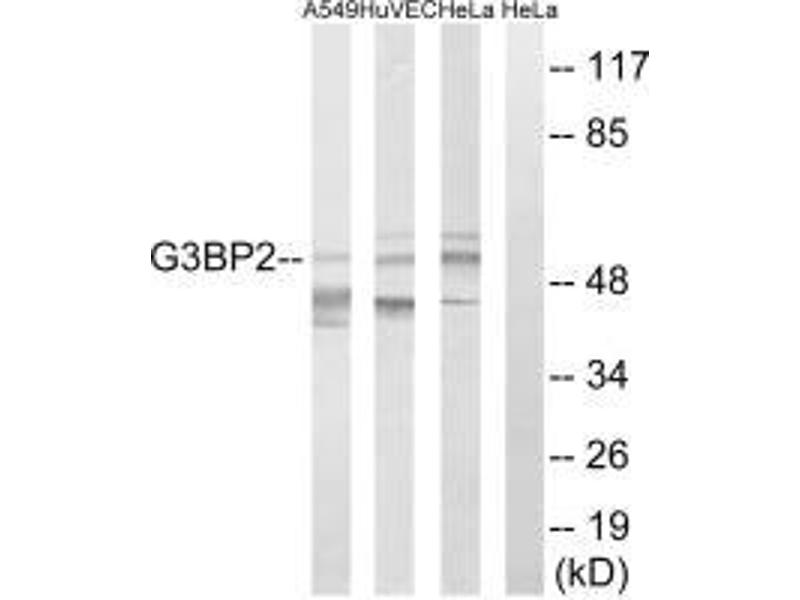 Kennedy D., Submitted (MAR-1998) to the EMBL/GenBank/DDBJ databases.Aliases: G3BP 2 antibody, G3BP-2 antibody, G3BP2 antibody, G3BP2_HUMAN antibody, GAP SH3 domain binding protein 2 antibody, GAP SH3 domain-binding protein 2 antibody, GTPase activating protein (SH3 domain) binding protein 2 antibody, Ras GTPase activating protein SH3 domain binding protein 2 antibody, Ras GTPase-activating protein-binding protein 2 antibody