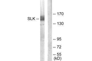 Nagase T., DNA Res. 3:321-329(1996).Aliases: SLK antibody, KIAA0204 antibody, STK2 antibody, STE20-like serine/threonine-protein kinase antibody, STE20-like kinase antibody, hSLK antibody, EC 2.7.11.1 antibody, CTCL tumor antigen se20-9 antibody, STE20-related serine/threonine-protein kinase antibody, STE20-related kinase antibody, Serine/threonine-protein kinase 2 antibody
