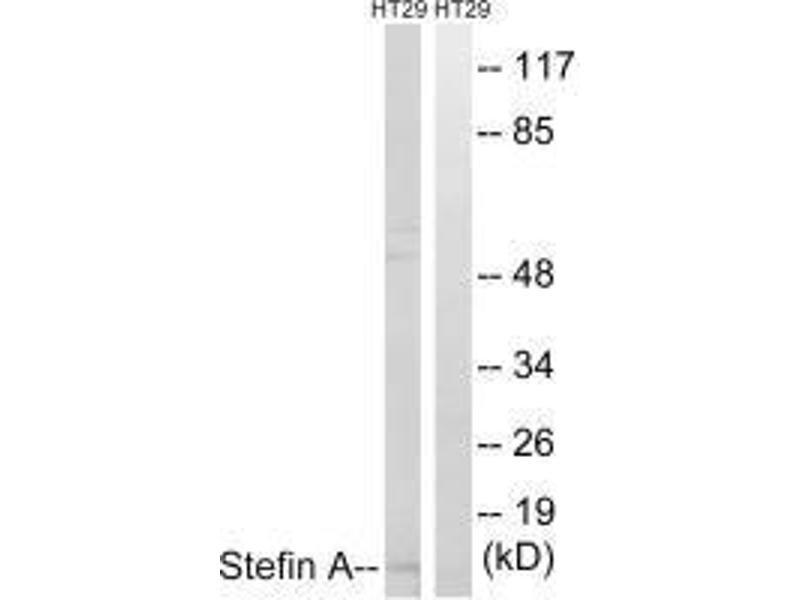 I Mlinaric-Rascan, Am. J. Pathol., Oct 1994, 145: 902.Aliases: AREI antibody, cstA antibody, Cystatin A antibody, Cystatin AS antibody, Cystatin-A antibody, Cystatin-AS antibody, CYTA_HUMAN antibody, Stefin A antibody, Stefin-A antibody, STF1 antibody, STFA antibody