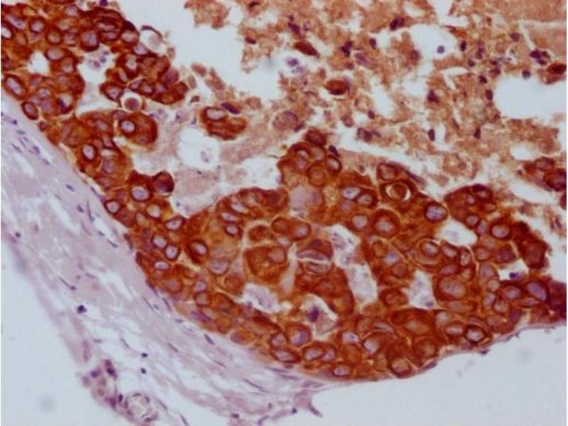Background: Cytokeratin pan is part of a subfamily of intermediate filament proteins that are characterized by remarkable biochemical diversity, and represented in human epithelial tissues by at least 20 different polypeptides. Cytokeratins range in molecular weight between 40 kDa- 68 kDa, and an isoelectric pH between 4.9-7.8. The individual human cytokeratins are numbered 1 to 20. The various epithelia in the human body usually express cytokeratins which are not only characteristic of the type of epithelium, but also related to the degree of maturation or differentiation within an epithelium. Cytokeratin subtype expression patterns are used to an increasing extent in the distinction of different types of epithelial malignancies. The cytokeratin antibodies are not only of assistance in the differential diagnosis of tumors using immunohistochemistry on tissue sections, but are also a useful tool in cytopathology and flow cytometric assays. The composition of cytokeratin pairs vary with the epithelial cell type, stage of differentiation, cellular growth environment, and disease state. Many studies have shown the usefulness of keratins as markers in cancer research and tumor diagnosis.