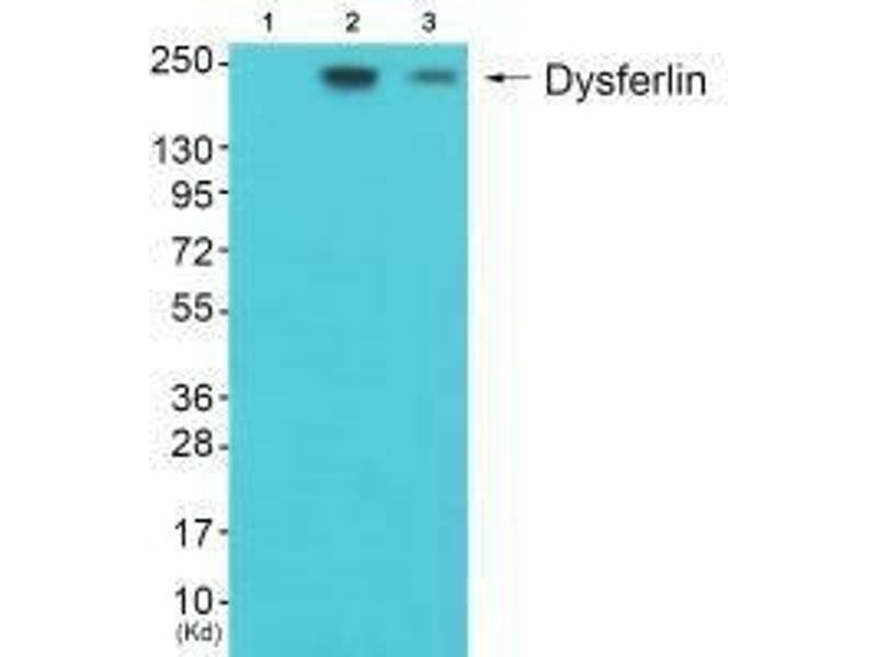 Eriko Fujita, Hum. Mol. Genet., Mar 2007, 16: 618 - 629.Aliases: DMAT antibody, DYSF antibody, DYSF_HUMAN antibody, Dysferlin antibody, Dysferlin limb girdle muscular dystrophy 2B (autosomal recessive) antibody, Dysferlin limb girdle muscular dystrophy 2B antibody, Dystrophy associated fer 1 like 1 antibody, Dystrophy associated fer 1 like protein antibody, Dystrophy associated fer1 like 1 antibody, Dystrophy associated fer1 like protein antibody, Dystrophy-associated fer-1-like protein antibody, Fer 1 like protein 1 antibody, Fer-1-like protein 1 antibody, Fer1 like protein 1 antibody, FER1L1 antibody, FLJ00175 antibody, FLJ90168 antibody, LGMD 2B antibody, LGMD2B antibody, Limb girdle muscular dystrophy 2B (autosomal recessive) antibody, Limb girdle muscular dystrophy 2B antibody, Miyoshi myopathy antibody, MM antibody, MMD1 antibody