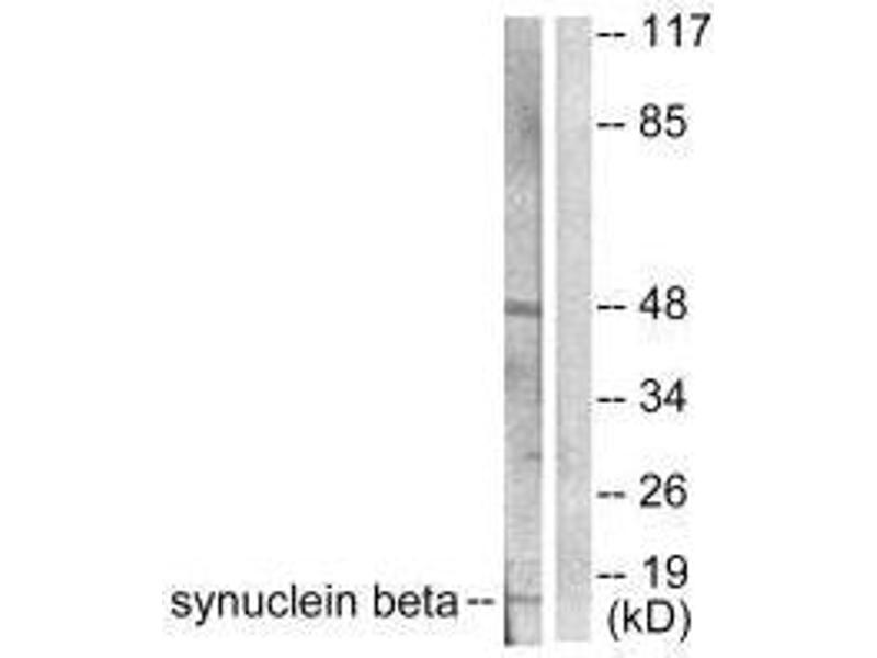 Heather Snyder, J. Biol. Chem., Mar 2005, 280: 7562 - 7569.Aliases: 14 kDa brain-specific protein antibody, Beta-synuclein antibody, Phosphoneuroprotein 14 antibody, PNP14 antibody, Sncb antibody, Synuclein beta antibody, SYUB_HUMAN antibody