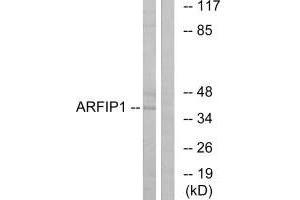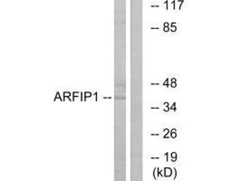 The MGC Project Team, Genome Res. 14:2121-2127(2004).Aliases: ADP ribosylation factor interacting protein 1 antibody, ADP-ribosylation factor-interacting protein 1 antibody, Arfaptin antibody, Arfaptin-1 antibody, ARFIP 1 antibody, Arfip1 antibody, ARFP1_HUMAN antibody, HSU52521 antibody, MGC117369 antibody