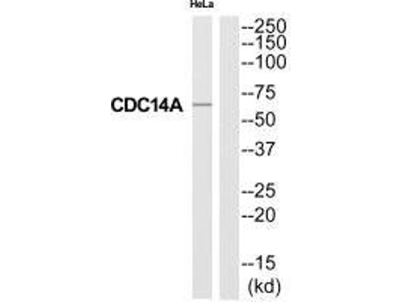 Gregory S.G., Nature 441:315-321(2006).Aliases: CDC14A antibody, Dual specificity protein phosphatase CDC14A antibody, EC 3.1.3.16 antibody, EC 3.1.3.48 antibody, CDC14 cell division cycle 14 homolog A antibody