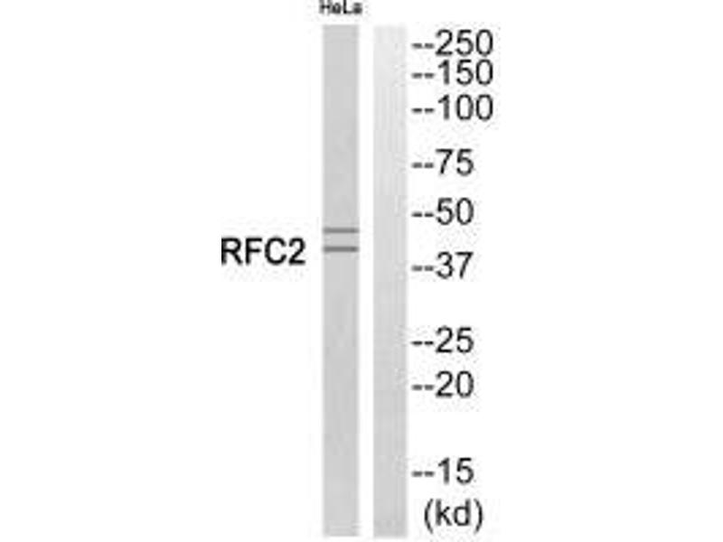Martindale D.W., Mamm. Genome 11:890-898(2000).Aliases: A1 40 kDa subunit antibody, A1 antibody, Activator 1 40 kDa subunit antibody, Activator 1 antibody, Activator 1 subunit 2 antibody, MGC3665 antibody, OTTHUMP00000160645 antibody, OTTHUMP00000160646 antibody, Replication factor C (activator 1) 2 40 kDa antibody, Replication factor C (activator 1) 2 antibody, Replication factor C 2 antibody, Replication factor C 40 kDa subunit antibody, Replication factor C subunit 2 antibody, RF C 40 kDa subunit antibody, RF-C 40 kDa subunit antibody, RFC 2 antibody, RFC 40 antibody, RFC 40 kDa subunit antibody, RFC2 antibody, RFC2_HUMAN antibody, RFC40 antibody