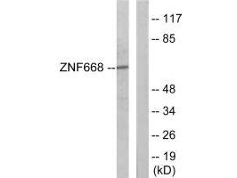 The MGC Project Team, Genome Res. 14:2121-2127(2004).Aliases: FLJ13479 antibody, FLJ14492 antibody, OTTHUMP00000045001 antibody, RGD1308623 antibody, Zfp668 antibody, Zinc finger protein 668 antibody, ZN668_HUMAN antibody, ZNF668 antibody