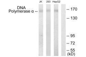 Hsi K.-L., Nucleic Acids Res. 18:6231-6237(1990).Aliases: DKFZp686K1672 antibody, DNA polymerase alpha 1 catalytic subunit antibody, DNA polymerase alpha catalytic subunit antibody, DNA polymerase alpha catalytic subunit p180 antibody, DNA polymerase alpha p180 subunit antibody, DPOLA_HUMAN antibody, OTTHUMP00000023089 antibody, OTTHUMP00000023090 antibody, P180 antibody, p180 subunit antibody, POLA antibody, POLA1 antibody, Polymerase (DNA directed), alpha 1, catalytic subunit antibody, Polymerase (DNA-directed), alpha (70kD) antibody
