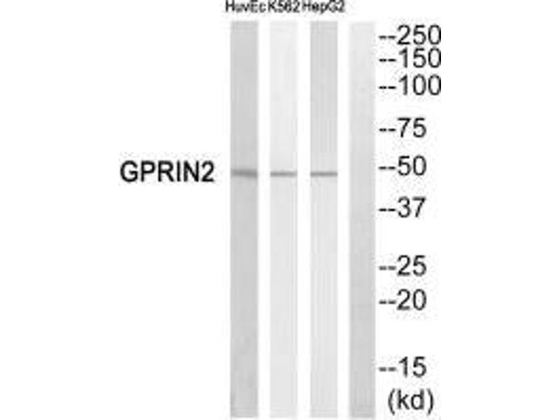 Chen L.T., J. Biol. Chem. 274:26931-26938(1999).Aliases: GPRIN2 antibody, KIAA0514G protein-regulated inducer of neurite outgrowth 2 antibody, GRIN2 antibody