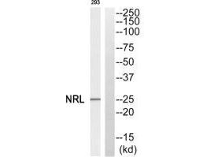 Heilig R., Nature 421:601-607(2003)Aliases: D14S46E antibody, Neural retina-specific leucine zipper protein antibody, Neural retinal specific leucine zipper antibody, NRL antibody, NRL MAF antibody, NRL_HUMAN antibody, RP27 antibody