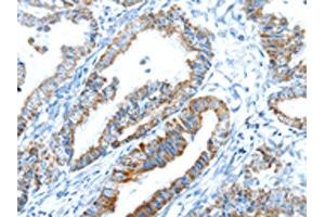 Background: TRIM47 (tripartite motif-containing 47), also known as GOA (Gene overexpressed in astrocytoma protein) or RNF100 (RING finger protein 100), is a 638 amino acid protein that localizes to both cytoplasm and nucleus and belongs to the TRIM/RBCC family. While TRIM47 expression is low in most tissues, it is highly expressed in kidney tubular cells and overexpressed in astrocytoma tumor cells.