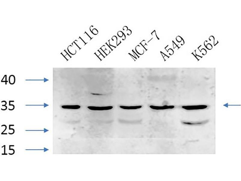 Optimal working dilutions should be determined experimentally by the investigator. Suggested starting dilutions are as follows: WB (1:500-1:2000), IF (1:50-1:300), IHC-P (1:50-1:300), ELISA (1:20000). Not yet tested in other applications.