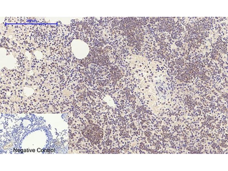 Rabbit Anti-E2F-1 Polyclonal Antibody,E2F1 RBBP3,The protein encoded by E2F1 (E2F transcription factor 1) is a member of the E2F family of transcription factors. The E2F family plays a crucial role in the control of cell cycle and action of tumor suppressor proteins and is also a target of the transforming proteins of small DNA tumor viruses. The E2F proteins contain several evolutionally conserved domains found in most members of the family. These domains include a DNA binding domain, a dimerization domain which determines interaction with the differentiation regulated transcription factor proteins (DP), a transactivation domain enriched in acidic amino acids, and a tumor suppressor protein association domain which is embedded within the transactivation domain. This protein and another 2 members, E2F2 and E2F3, have an additional cyclin binding domain. This protein binds preferentially to retinoblastoma protein pRB in a cell-cycle dependent manner. It can mediate both cell proliferation and p53-dependent/independent apoptosis.,E2F transcription factor 1