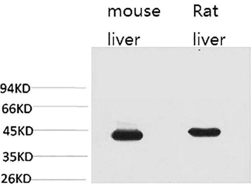 Mouse Anti-HAO1 Monoclonal Antibody,HAO1 (hydroxyacid oxidase 1) is one of three related genes that have 2-hydroxyacid oxidase activity yet differ in encoded protein amino acid sequence, tissue expression and substrate preference. Subcellular location of the encoded protein is the peroxisome. Specifically, HAO1 is expressed primarily in liver and pancreas and the encoded protein is most active on glycolate, a two-carbon substrate. The protein is also active on 2-hydroxy fatty acids. The transcript detected at high levels in pancreas may represent an alternatively spliced form or the use of a multiple near-consensus upstream polyadenylation site.,Hydroxyacid oxidase 1